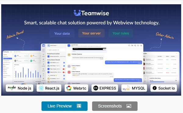 Teamwise – Smart Messaging, Audio & Video Calling for Modern Teams Demo Core Tech Stack User Roles & Permissions Team Management Channel Features Messaging Features Media & Attachments Voice & Video Communication Reminders & Notifications Search & Discovery User Profile & Status Admin Panel Features Note: Images used in demo are not included in download…